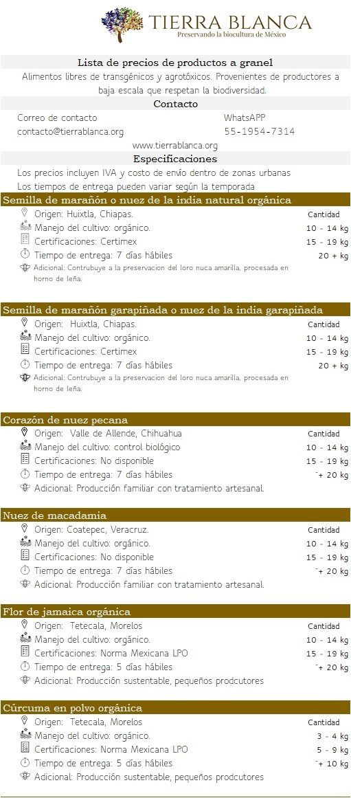 Correo: contacto@tierrablanca.org Whatsapp: dando clic aquí.