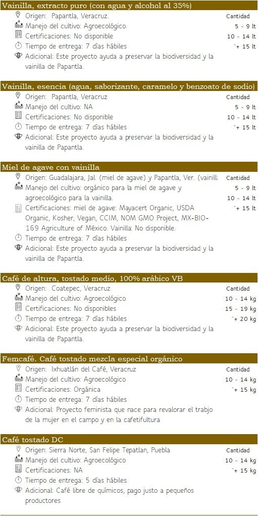Te compartimos nuestra lista de productos que podemos enviarte a granel.